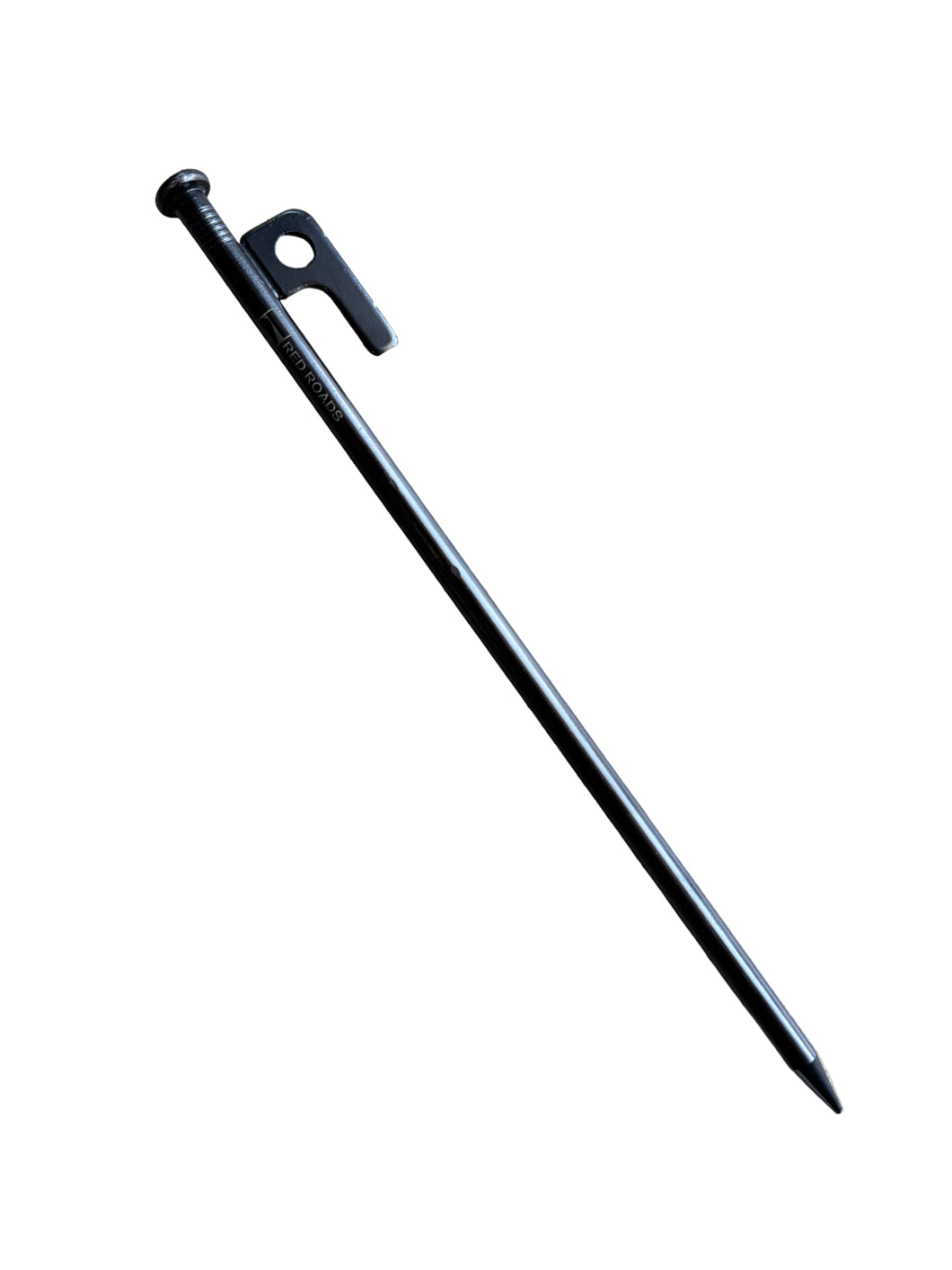 This is the inspiration for the Tent Peg we call The Nail. Made from blackened steel with a welded rope-lug for keeping your guy ropes in place and a eyelet for easy extraction in stubborn ground, The Nail is the starting point for a Tent Peg that will not let you (or your tent) down.